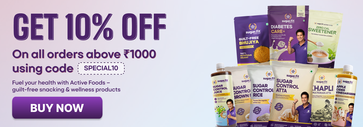 Low GI foods digest more slowly, causing a gradual rise in blood sugar rather than a sharp spike. For someone with diabetes, this means better blood sugar control, reduced insulin demand, and lower risk of complications. Consuming low GI foods like sugar.fit’s Active Atta and Rice helps in maintaining stable glucose levels, making them a beneficial part of a diabetic-friendly diet.