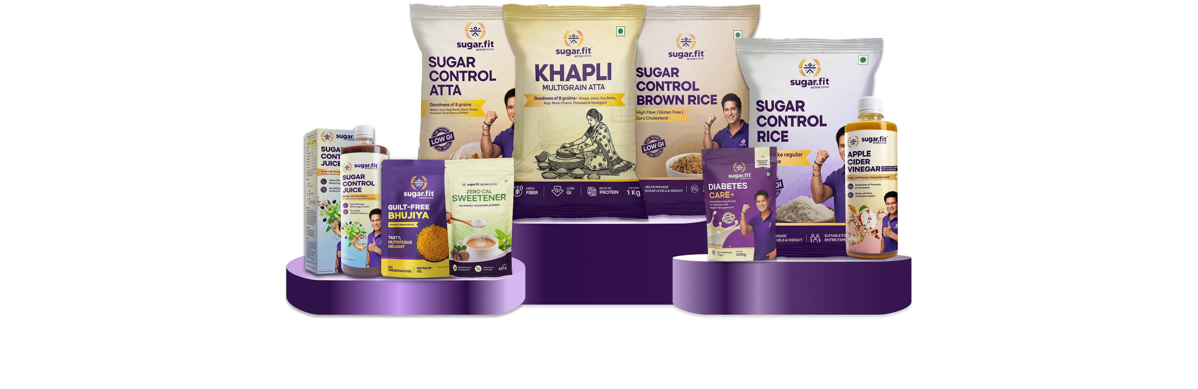 Sugar.fit’s Active Sugar Control Atta & Rice are great choices for those on a weight loss journey. Their low GI properties help control hunger by providing sustained energy and reducing spikes and crashes in blood sugar, which can lead to cravings. Additionally, these products can support better metabolism and satiety, making it easier to stick to your dietary goals.